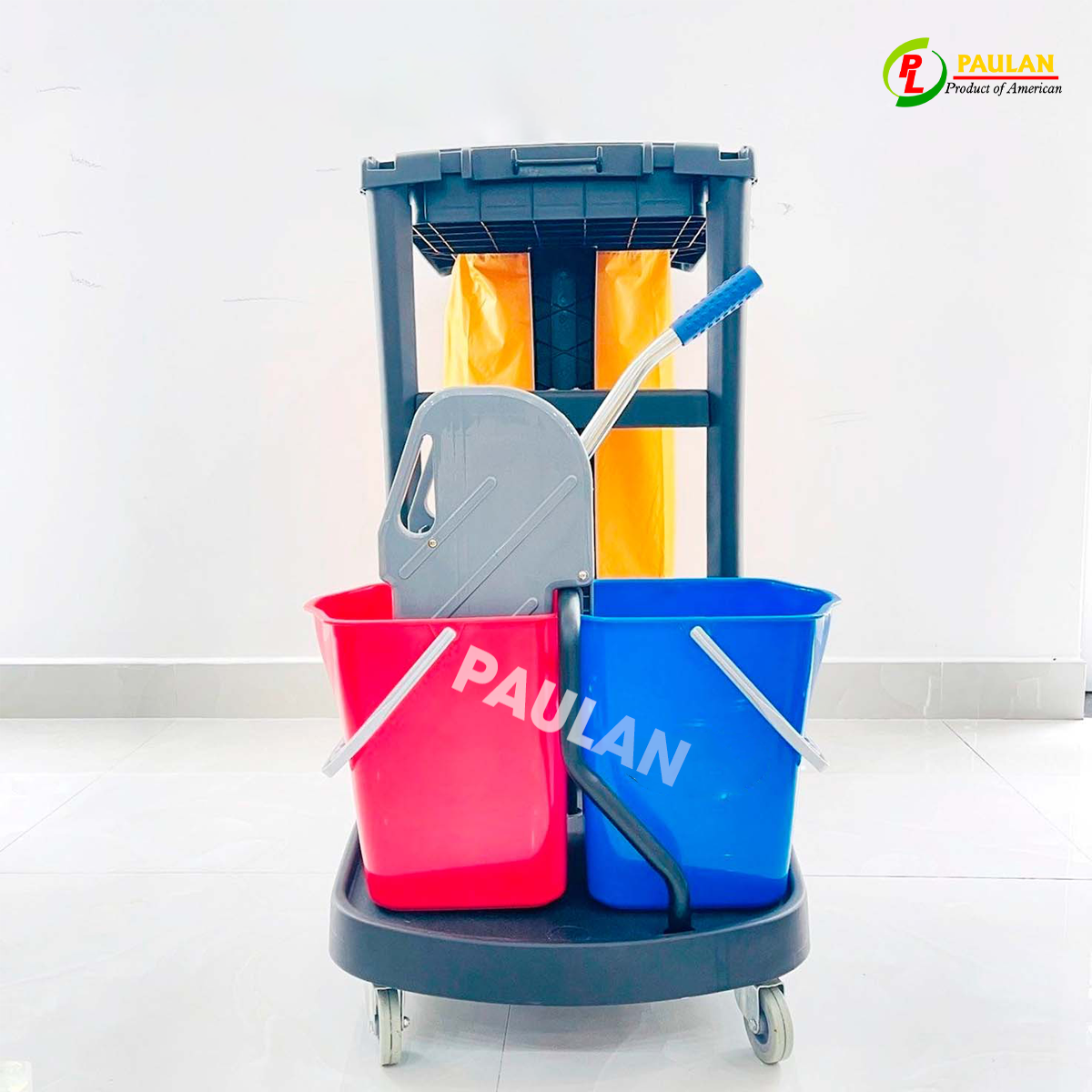 Xe làm vệ sinh Paulan có 2 xô chứa nước: 1 xô chứa nước sạch, 1 xô chứa nước bẩn giúp vệ sinh nền nhà được sạch sẽ hơn.